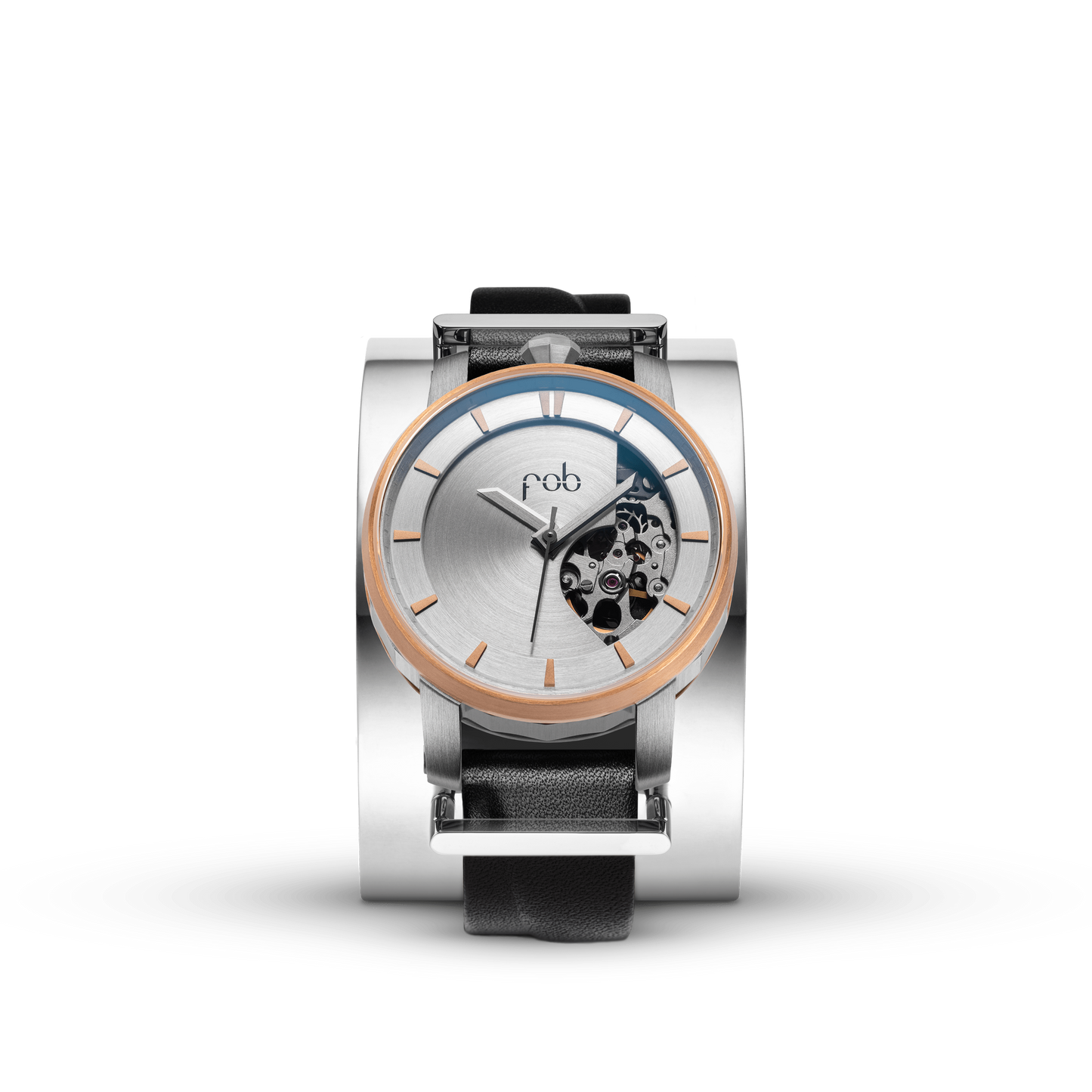 Associated with a steel cuff, the R360 watch is more than ever a mechanical jewel.