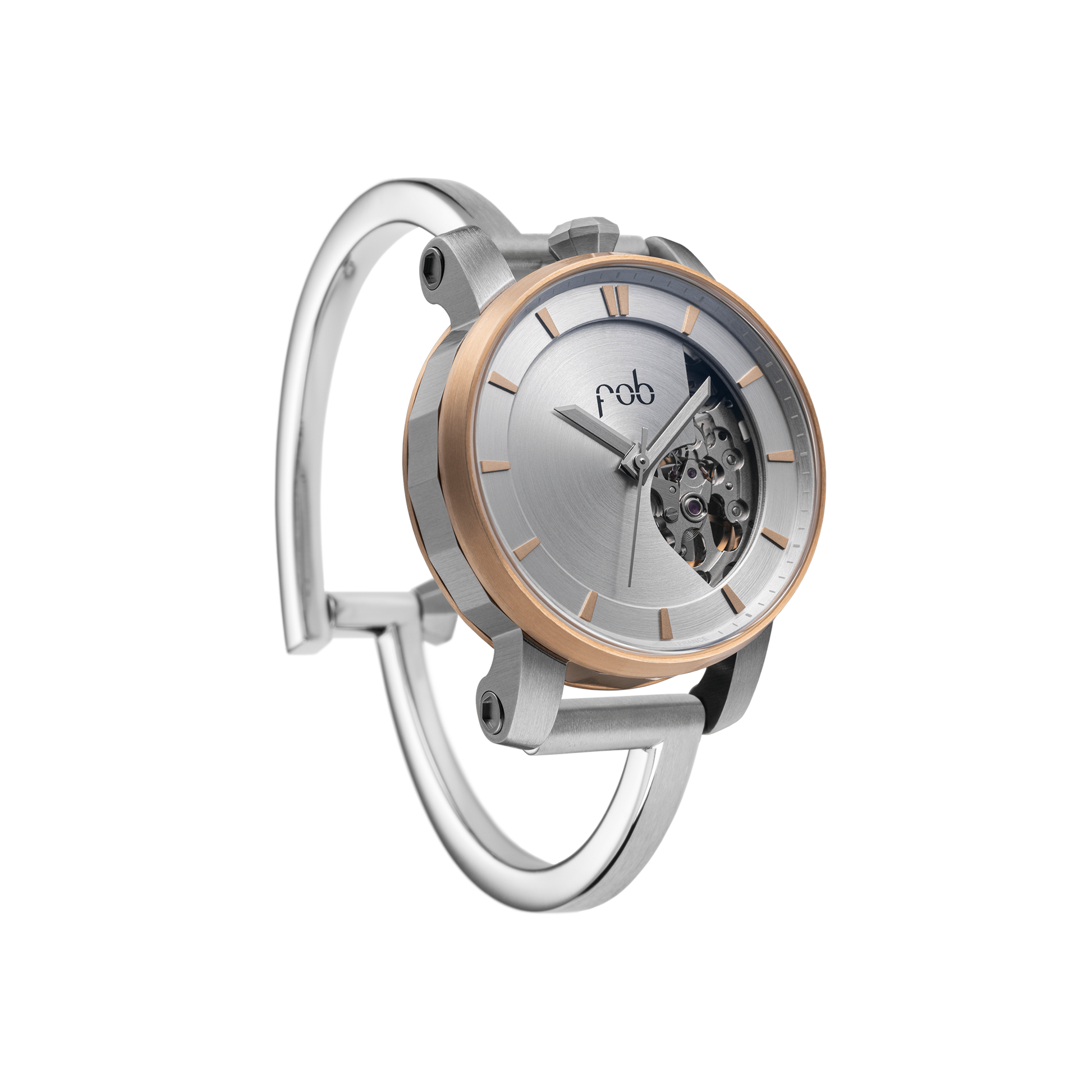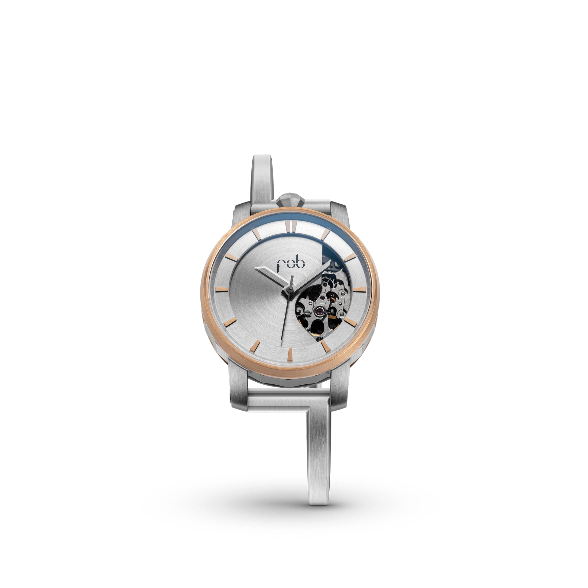 Automatic watch with a 36mm diameter, the R360 stands out with its cylindrical case, laying on the wrist like a real mechanical piece of jewelry.