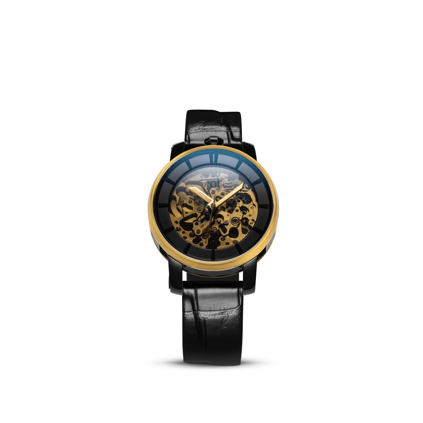 Designed by the brand’s creator in minimal aesthetic, the mat leather strap of the R360 Gold affirms its own singularity.