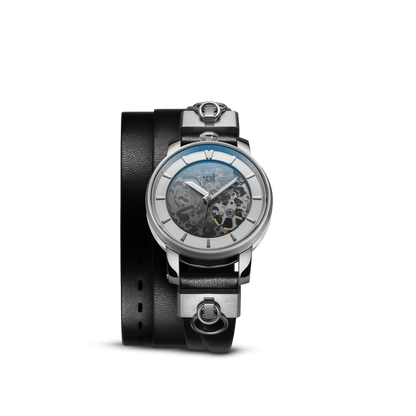 Montre automatique de 36mm de diamètre, la R360 se distingue par son boîtier cylindrique qui vient se poser sur le poignet en véritable bijou mécanique.