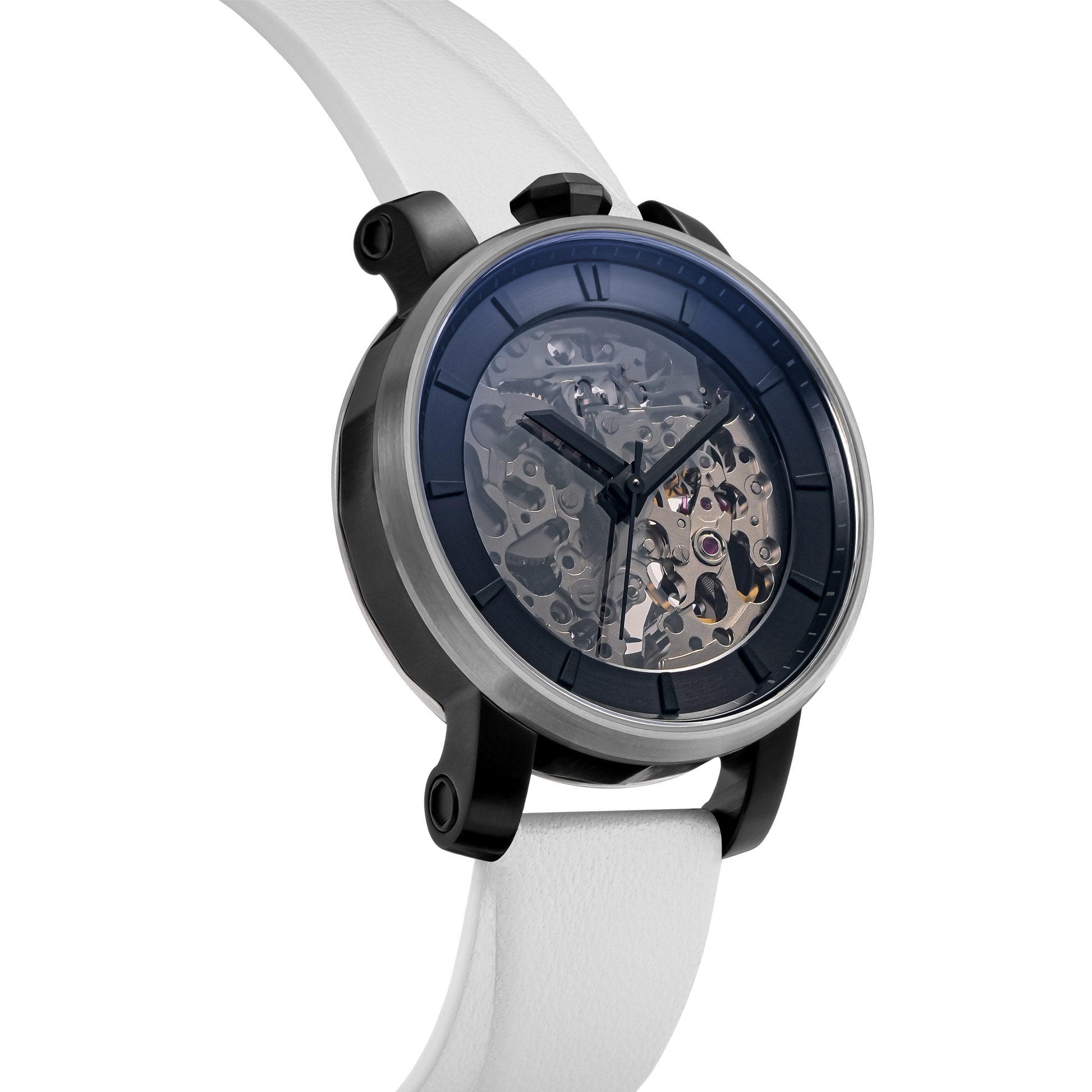 Automatic watch with a 36mm diameter, the R360 stands out with its cylindrical case, laying on the wrist like a real mechanical piece of jewelry.