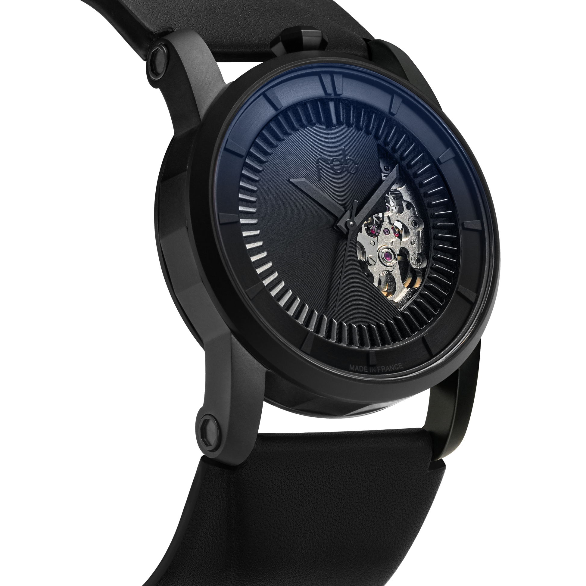 Automatic watch made in France, with a round case of 41mm diameter and a sapphire glass, the R413 is FOB PARIS' interpretation of contemporary watchmaking.
