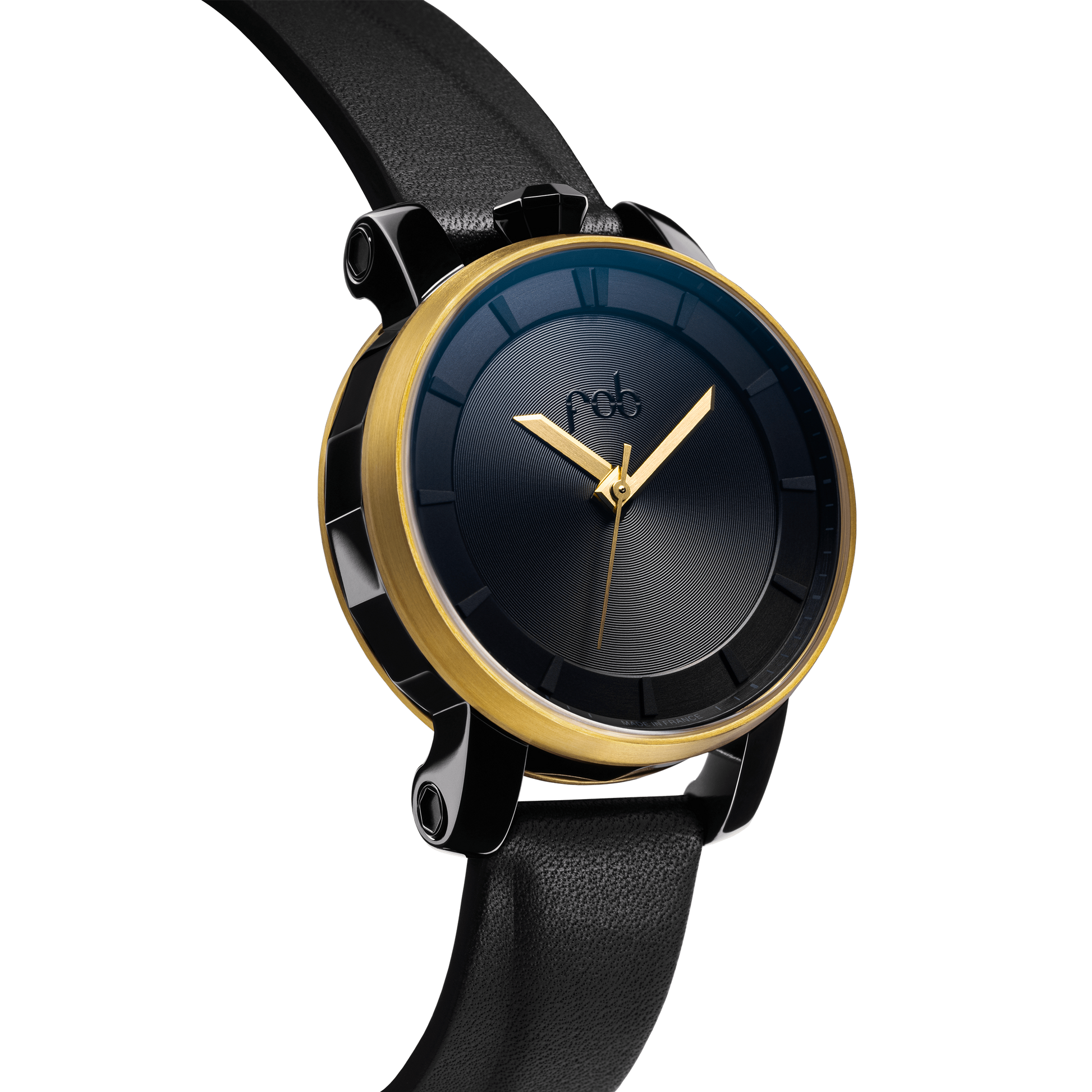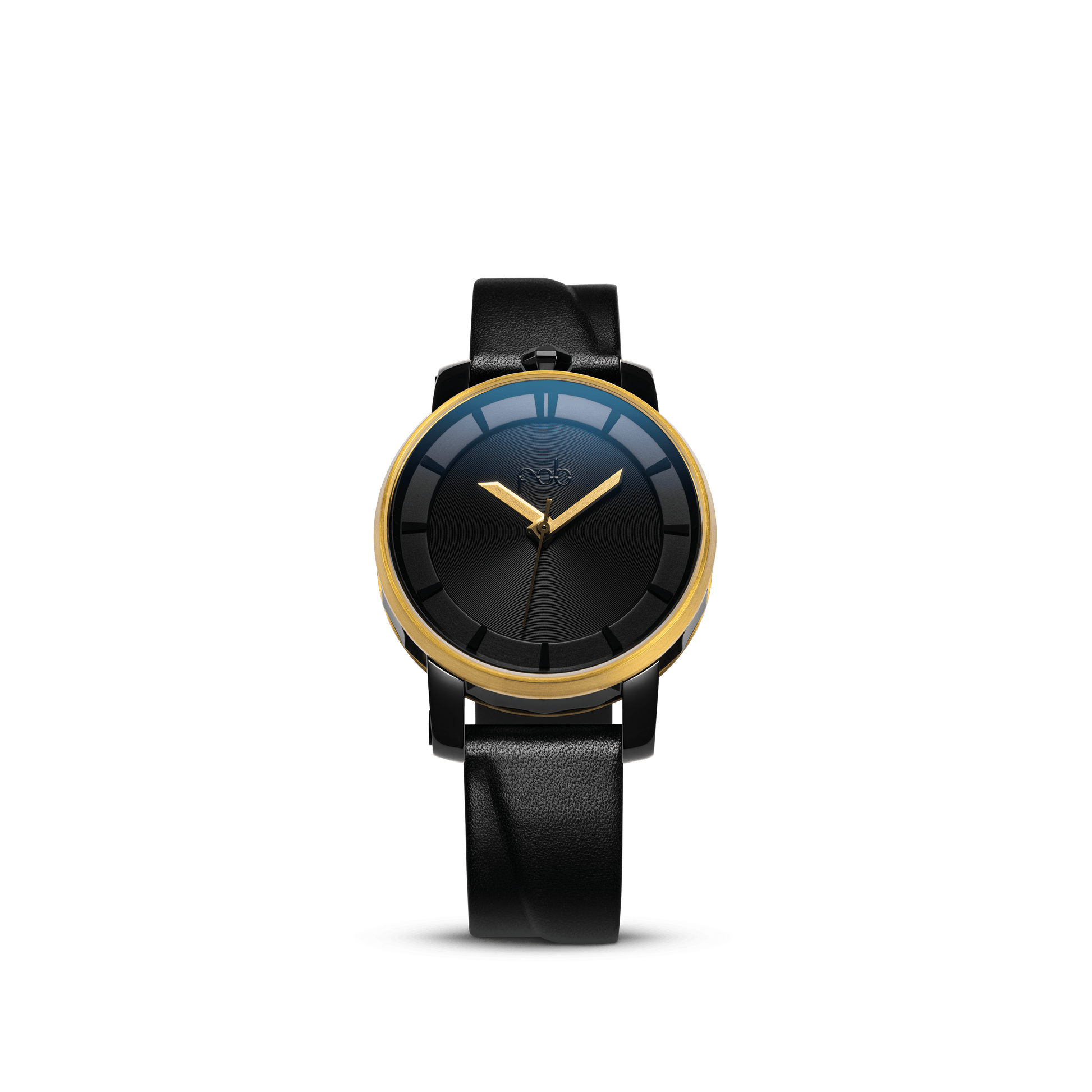 Case 36mm stainless steel, black and gold PVD Metal dial black matte PVD