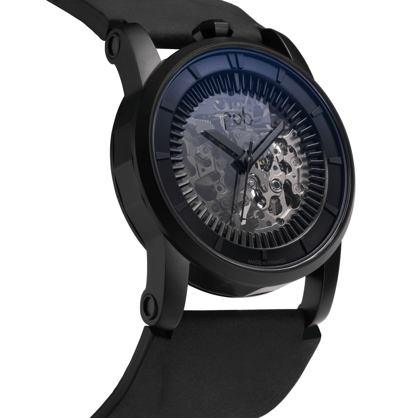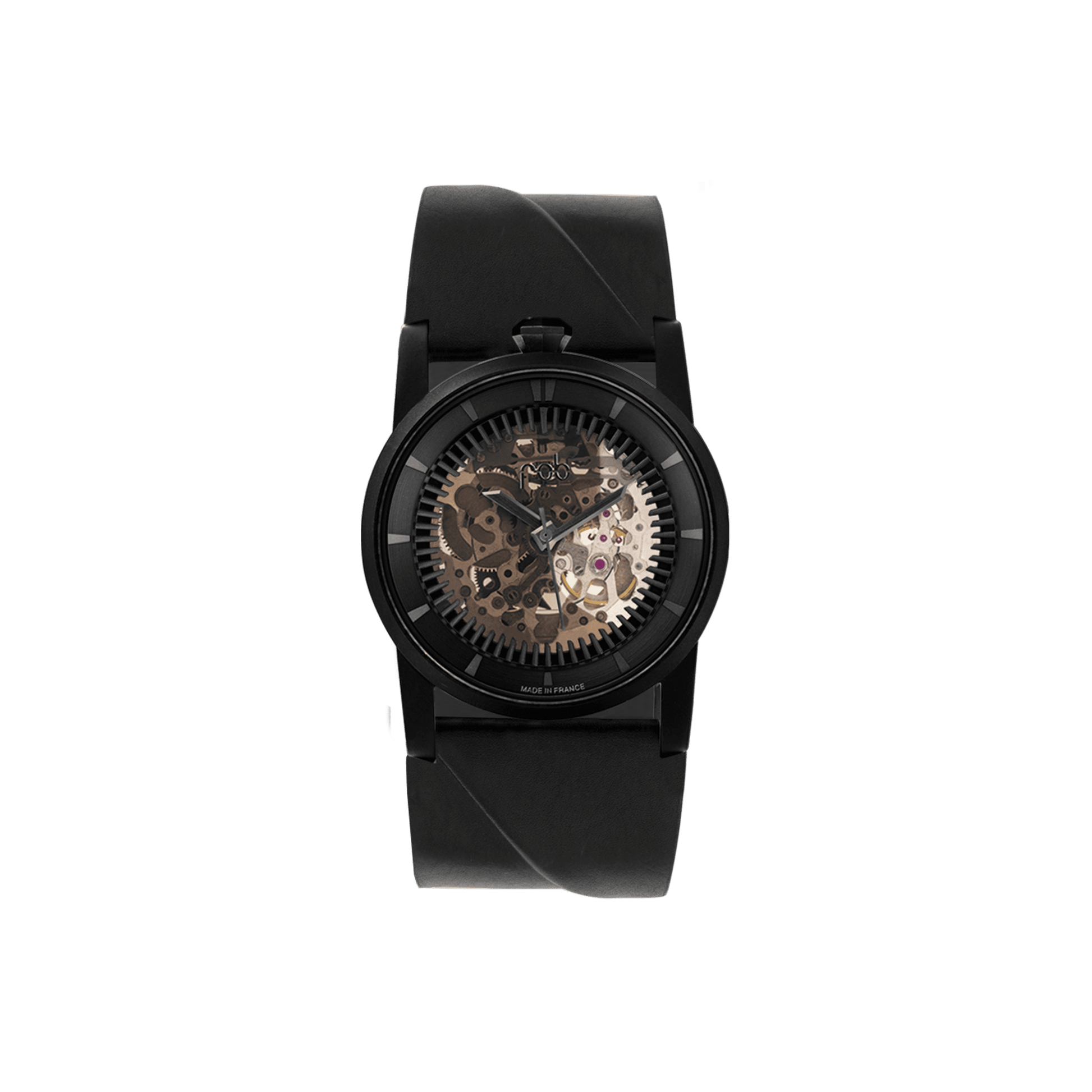Automatic watch made in France, with a round case of 41mm diameter and a sapphire glass, the R413 is FOB PARIS' interpretation of contemporary watchmaking.