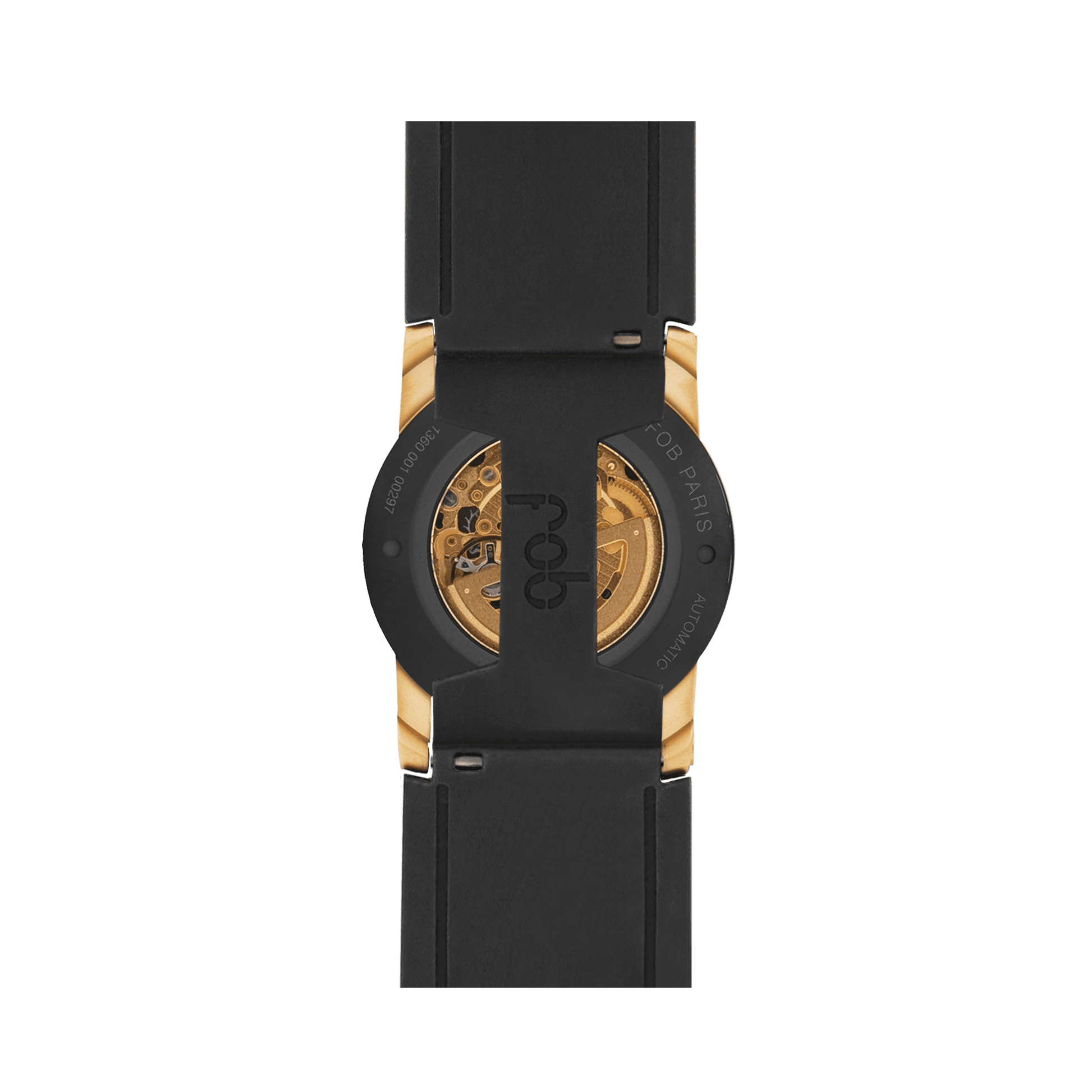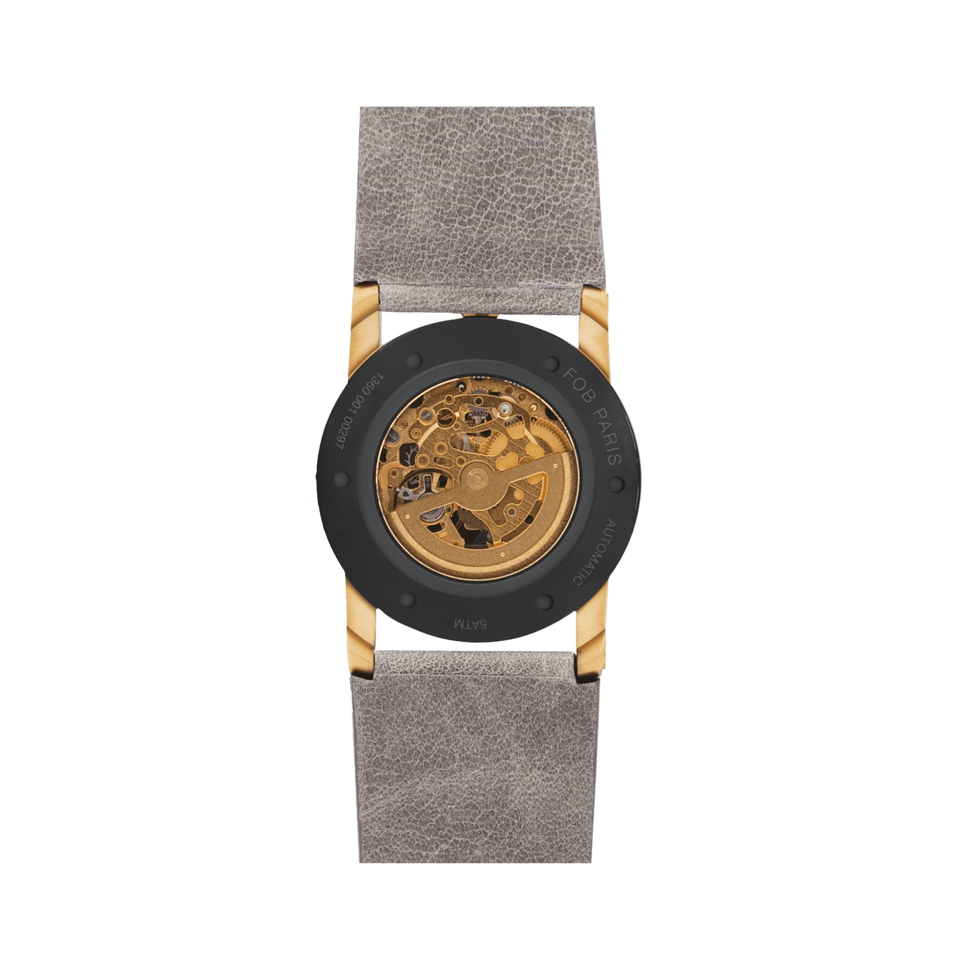 Automatic watch made in France, with a round case of 41mm diameter and a sapphire glass, the R413 is FOB PARIS' interpretation of contemporary watchmaking.