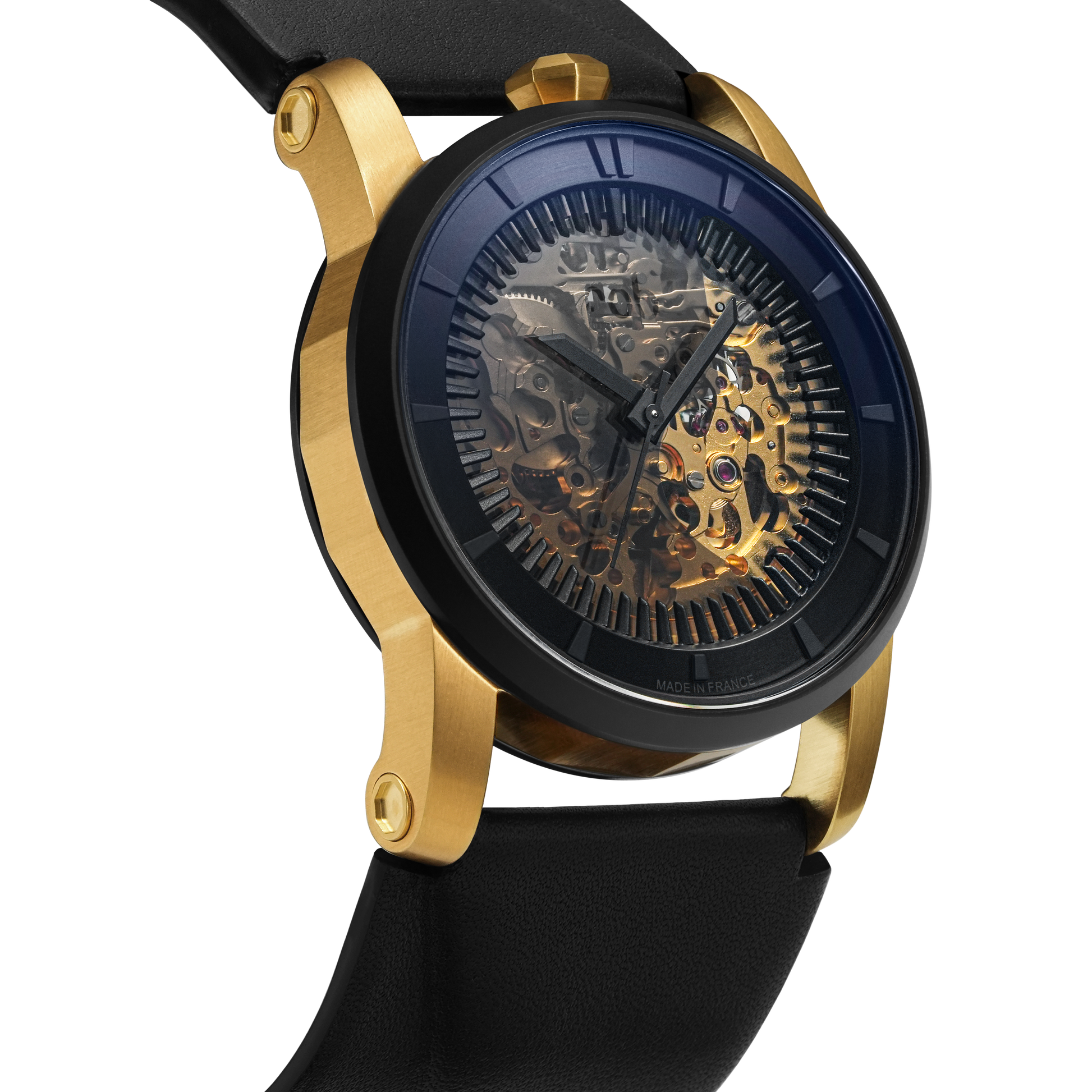 Automatic watch made in France, with a round case of 41mm diameter and a sapphire glass, the R413 is FOB PARIS' interpretation of contemporary watchmaking.