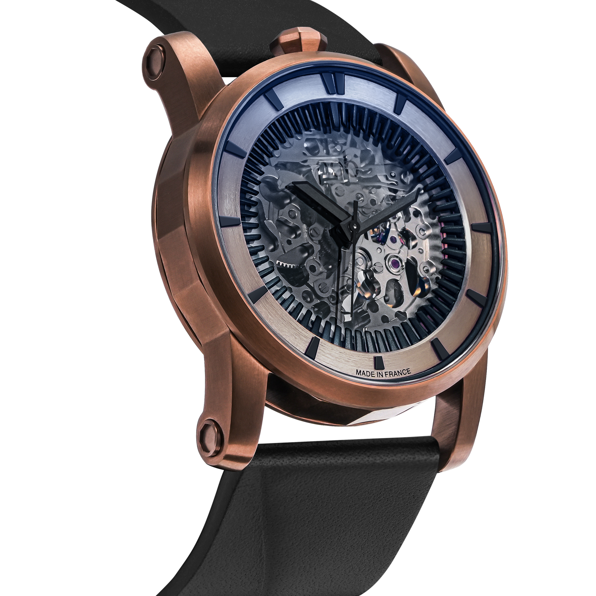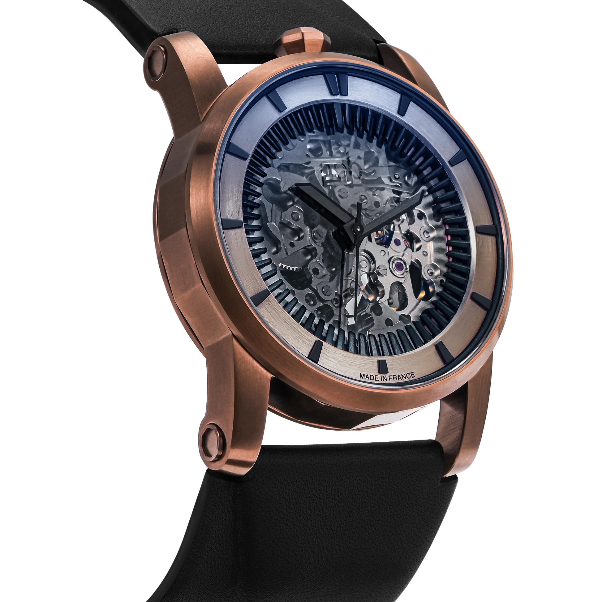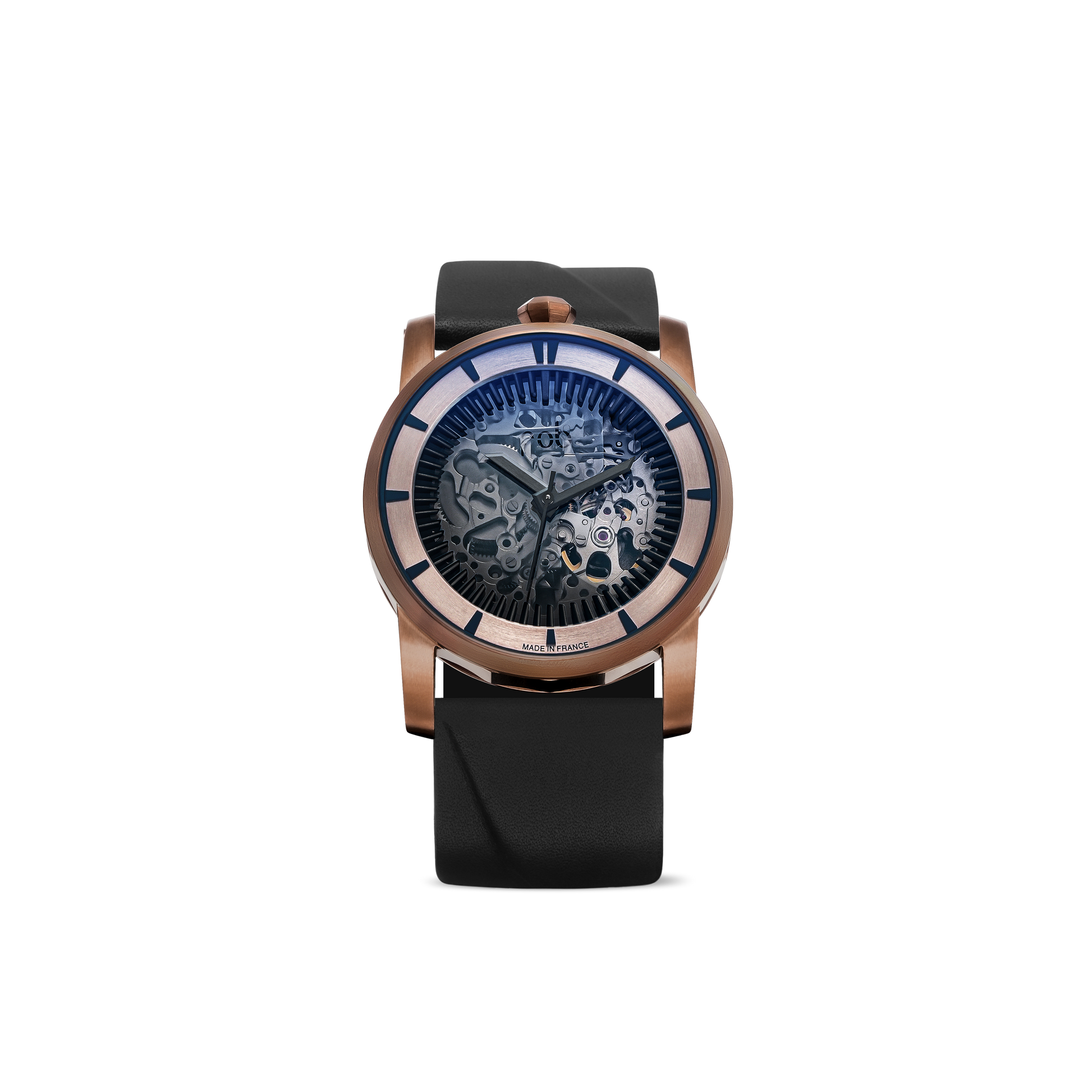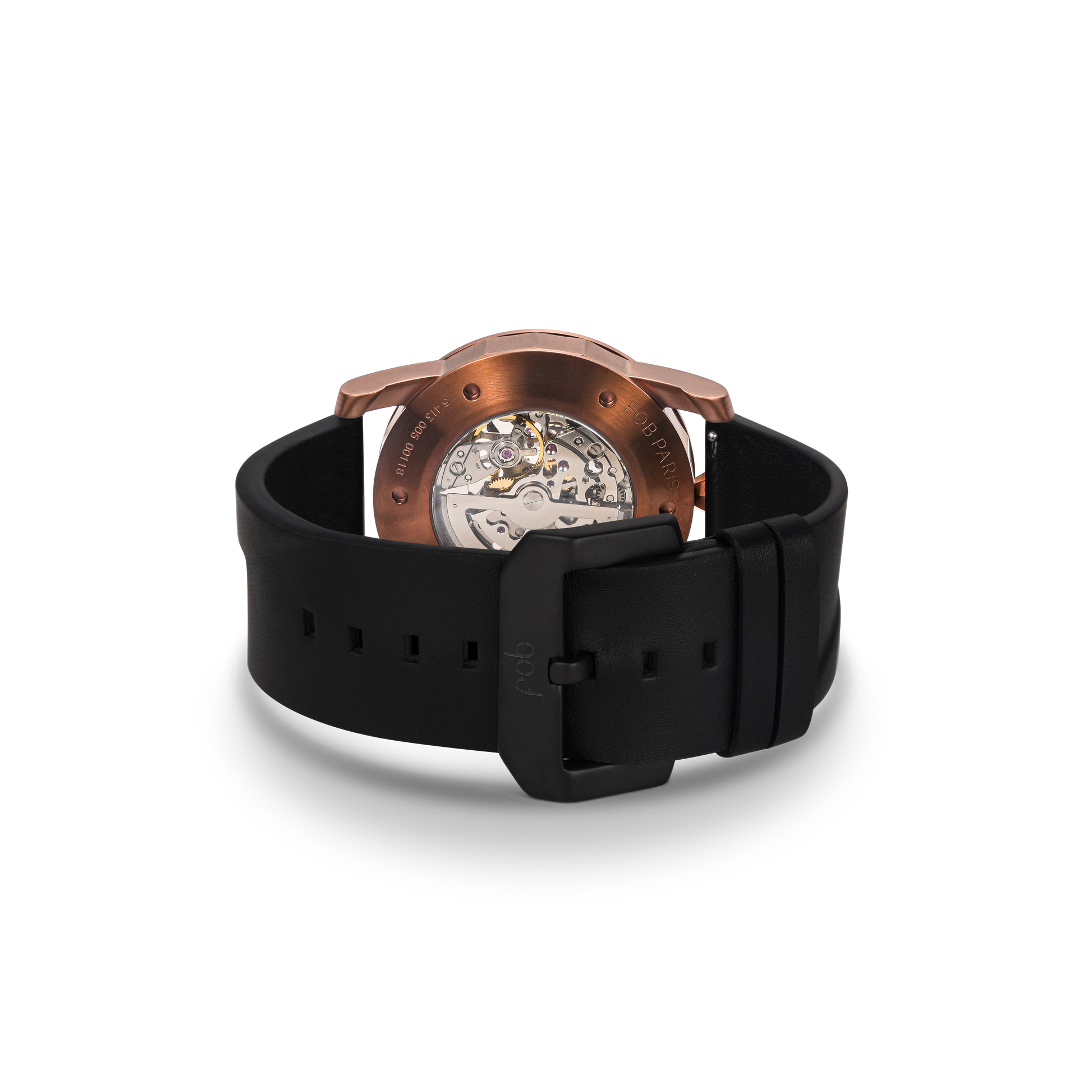 Automatic watch made in France, with a round case of 41mm diameter and a sapphire glass, the R413 is FOB PARIS' interpretation of contemporary watchmaking.