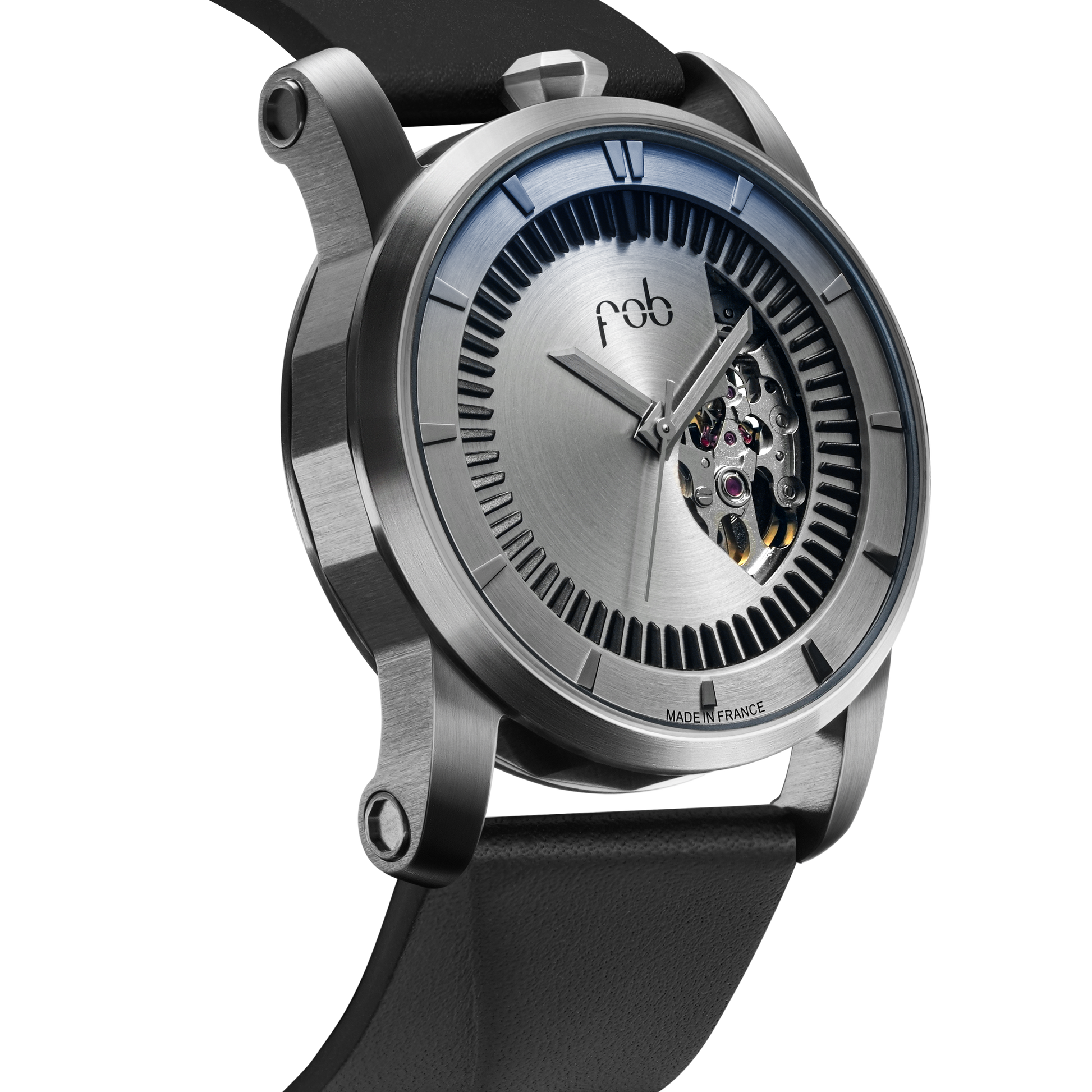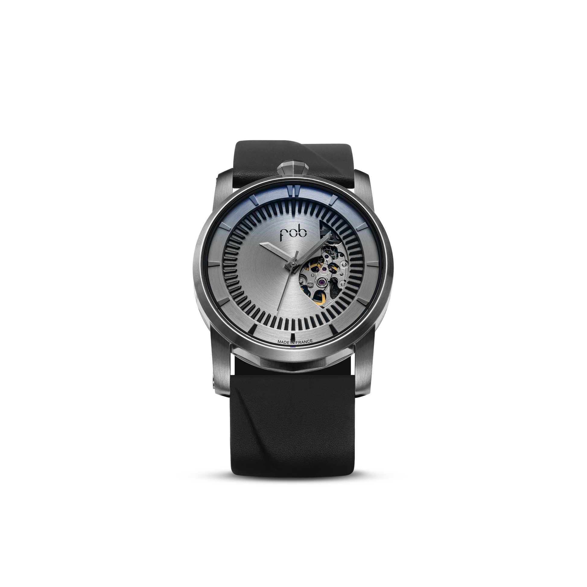 Automatic watch made in France, with a round case of 41mm diameter and a sapphire glass, the R413 is FOB PARIS' interpretation of contemporary watchmaking.