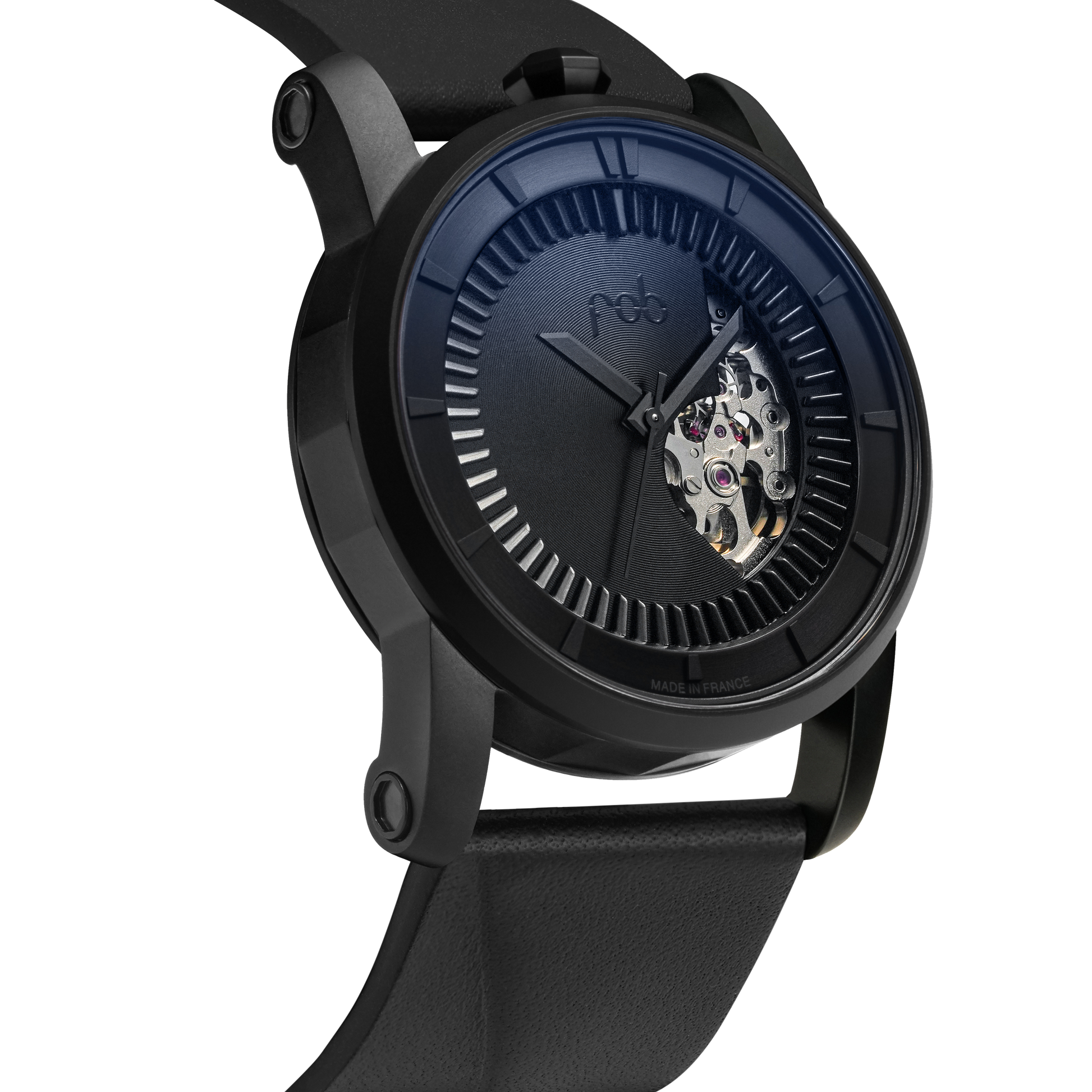 Automatic watch made in France, with a round case of 41mm diameter and a sapphire glass, the R413 is FOB PARIS' interpretation of contemporary watchmaking.