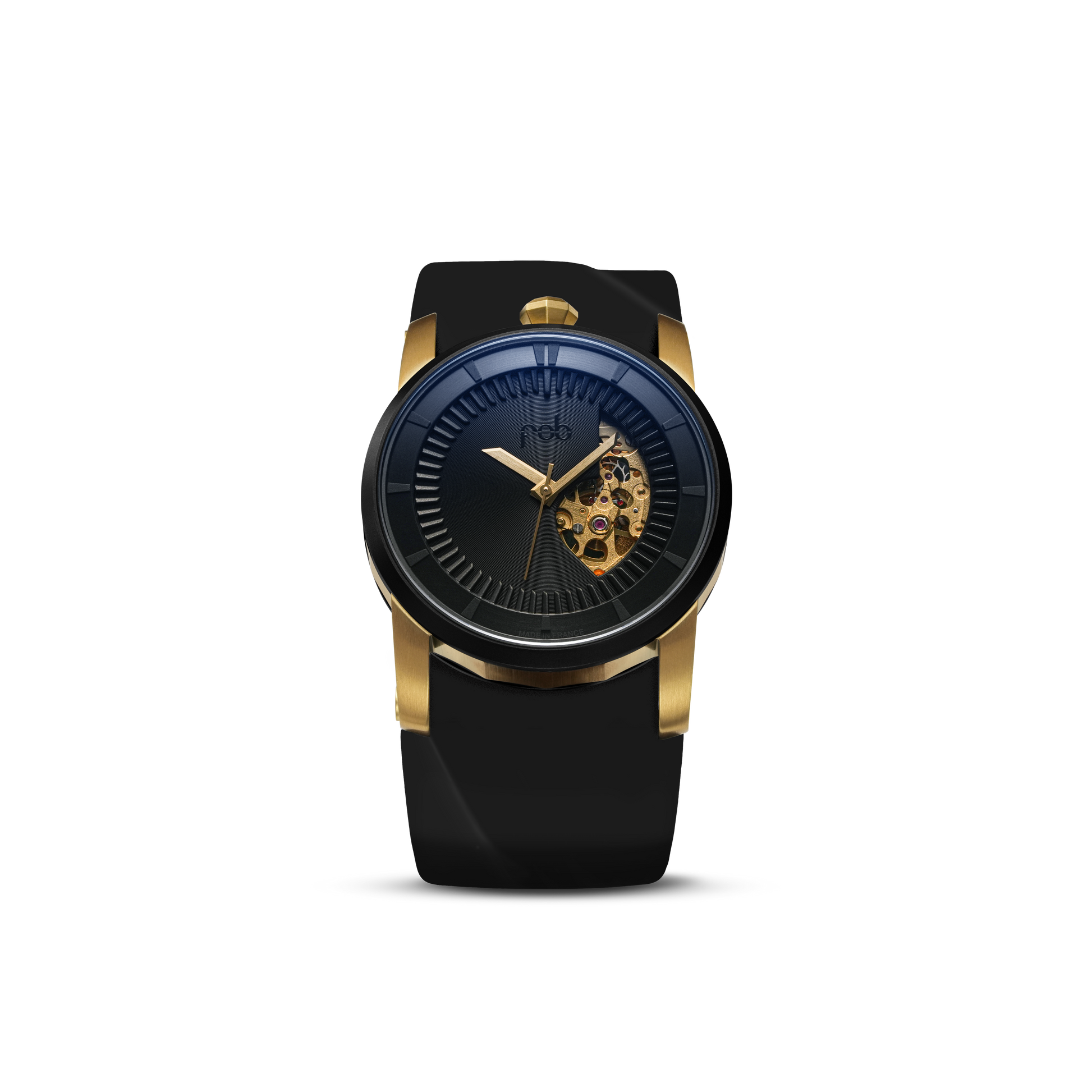 Boîtier 43mm acier inoxydable, PVD noir mat et or
