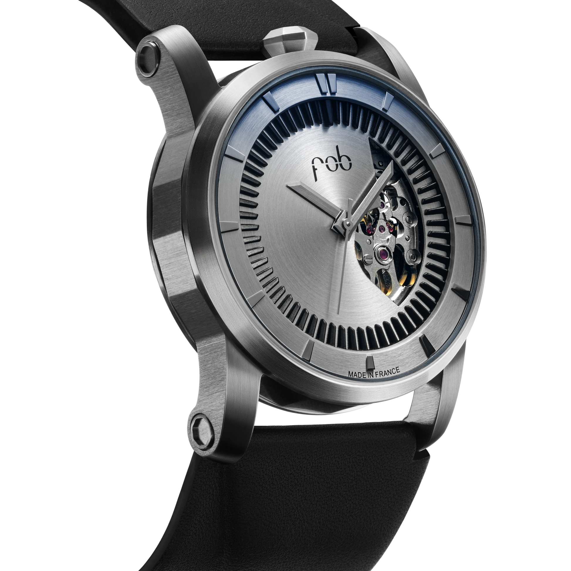 Montre automatique fabriquée en France, avec un boitier rond de 41mm de diamètre et un verre saphir, la R413 est l’interprétation par FOB PARIS de l’horlogerie contemporaine.